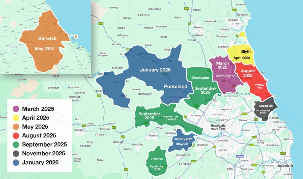 The map below shows when we’ll start work in each area across the region to fit and replace meters. This is a 10-year replacement programme, and we’re prioritising the oldest meters first. We’ll contact you directly when it’s time for your upgrade.