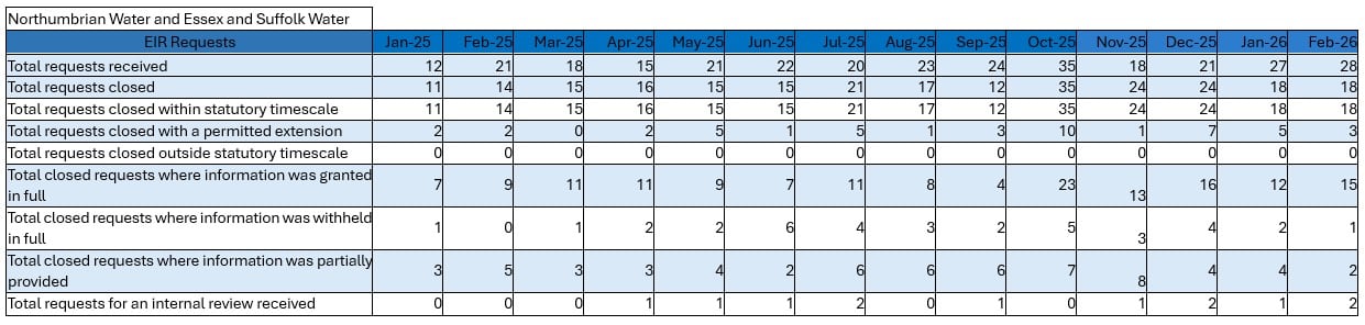 Please note that Northumbrian Water is not subject to the Freedom of Information Act.